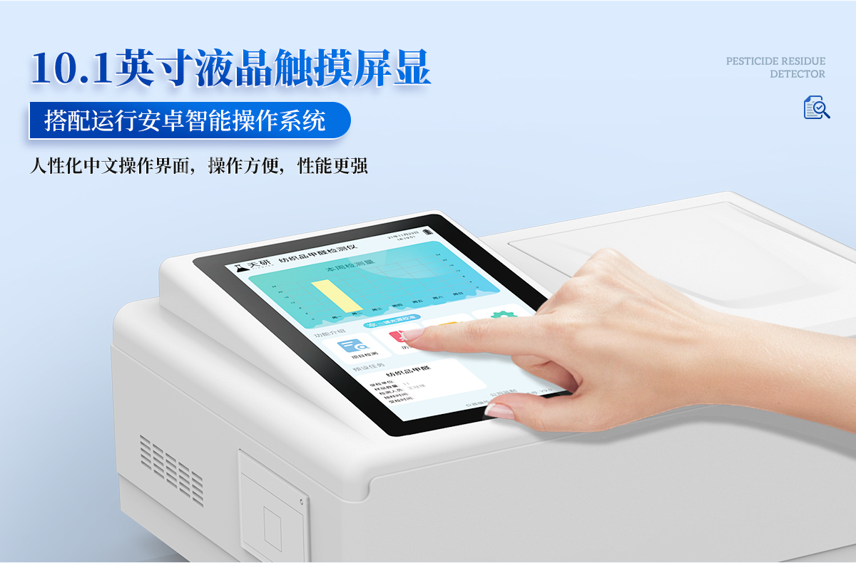 产品详情:产品简介: 天研仪器有限公司生产的高精度农药残留检测仪广泛应用于主要用于蔬菜、水果、茶叶、粮食、农副产品等食品中农药残留的快速检测,依据国标GB/T5009.199-2003进行检测,适用于果蔬茶生产基地以及农贸批发销售市场现场检测,餐馆、学校、食堂、