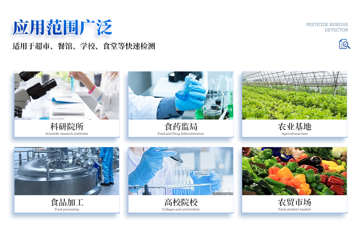 | 天研仪器有限公司生产的高精度农药残留检测仪广泛应用于主要用于蔬菜、水果、茶叶、粮食、农副产品等食品中农药残留的快速检测,依据国标GB/T5009.199-2003进行检测,适用于果蔬茶生产基地以及农贸批发销售市场现场检测,餐馆、学校、食堂、家庭果蔬加工前的安全速测等。目前广泛应用于市场监管局、检测中心、卫生监督部门、农业部门、院校及各单位食堂、、商超市场、司法部门、餐饮机构、检验检疫部门等单位使用。 |